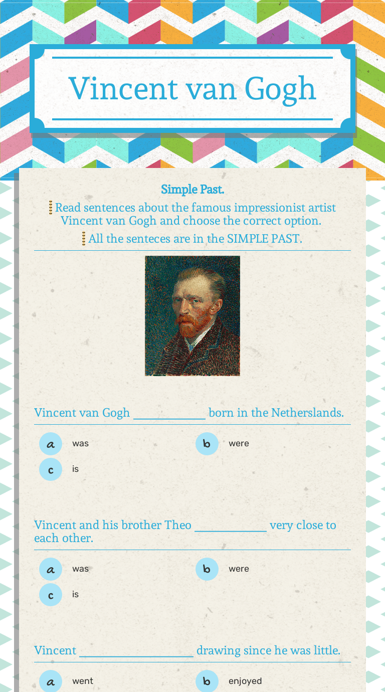 Vincent Van Gogh Worksheet / Van Gogh S Painting Style Lesson Plan Painting For Kids Kinderart :. In 1888 vincent van gogh moved to the yellow house in arles, in the south of france. While much has been written about the famous dutch painter, a lot remains that is relatively unknown by nick mafi despite dozens of biographies, thousands of articles, and millions of visitors to his museum in amsterdam, there is still a go. Learn about the painting in this article. Van gogh's adventurous use of color changed the direction of art. A new book is bringing their stories to light by madeleine luckel vincent van gogh is probably best known for three things: